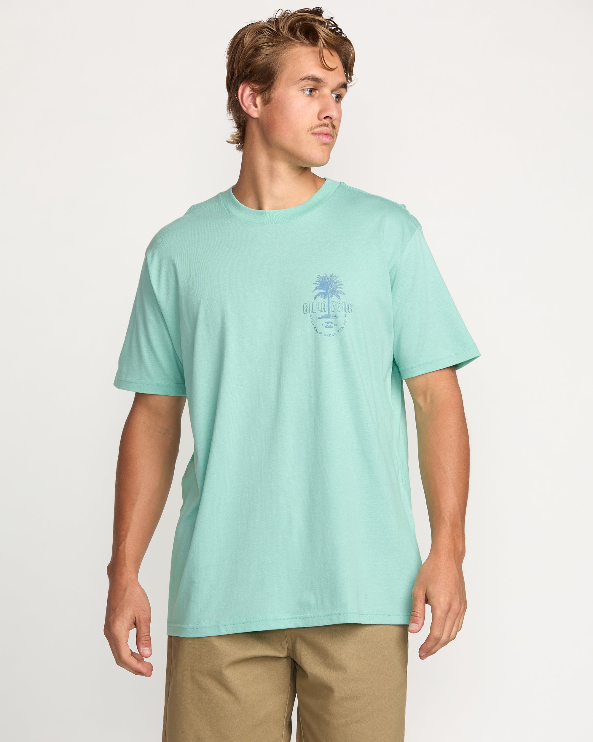 Stay calm under the palm in our premium tee. It offers timeless style in soft. lightweight 100% ringspun cotton. Subtle vintage-washed fabric and graphics complement the classic relaxed fit and ensures a smooth. broken-in feel straight from the start.
