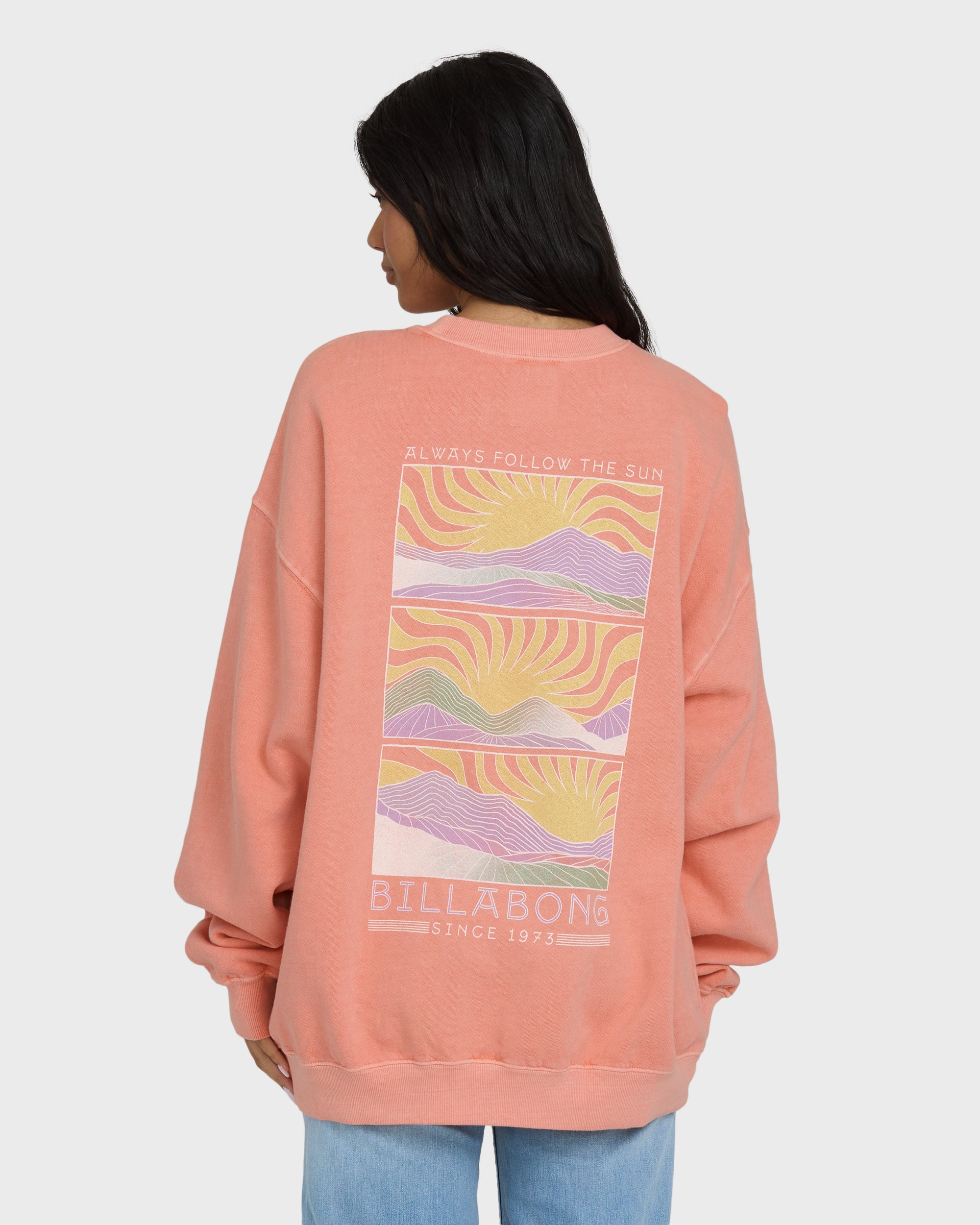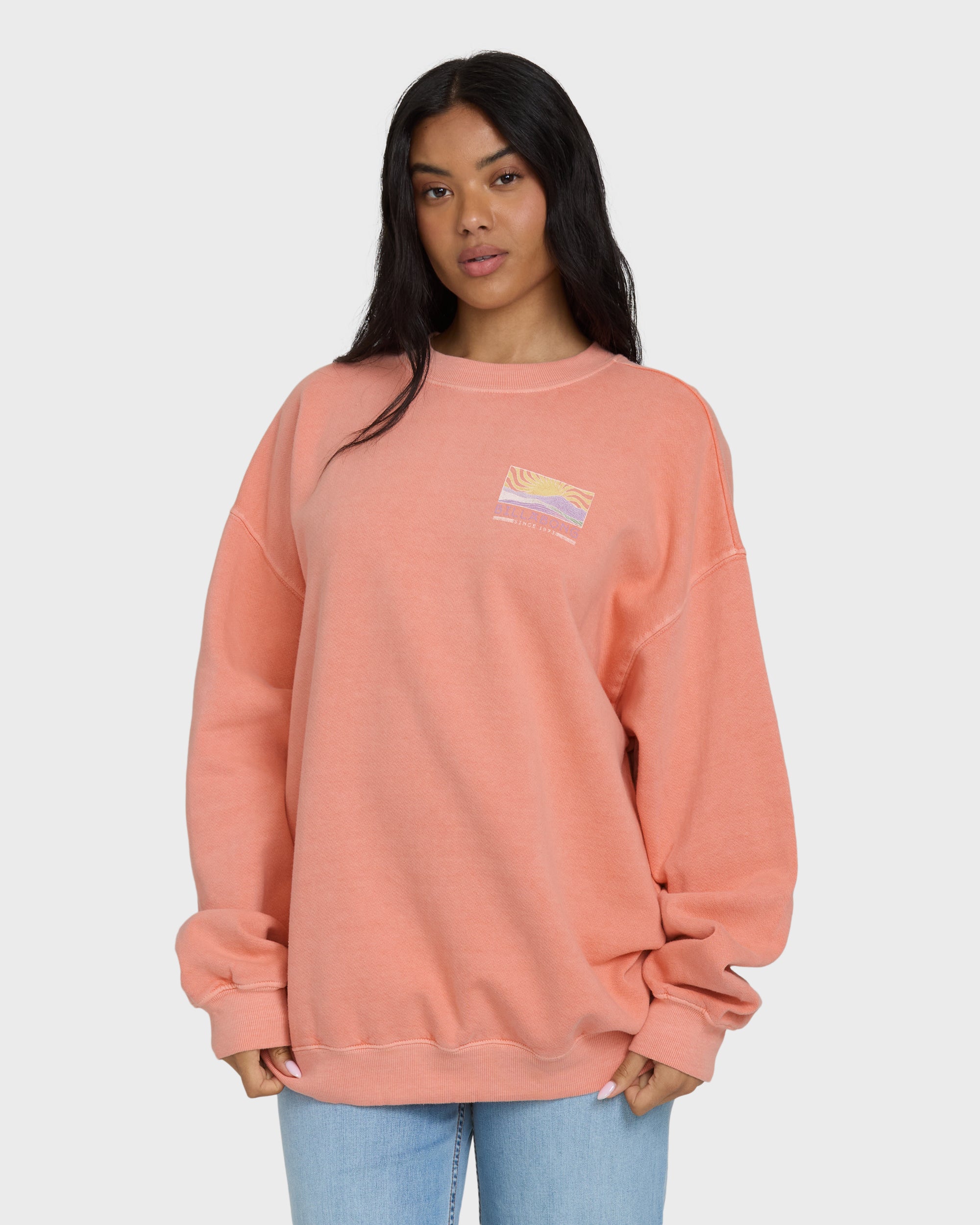 Our cotton-blend crewneck sweatshirt brings casual cool to your everyday look. The oversized fit and screen-printed graphics make this fleece pullover perfect for laid-back moments and weekend adventures. Featured here in the Pink colorway.