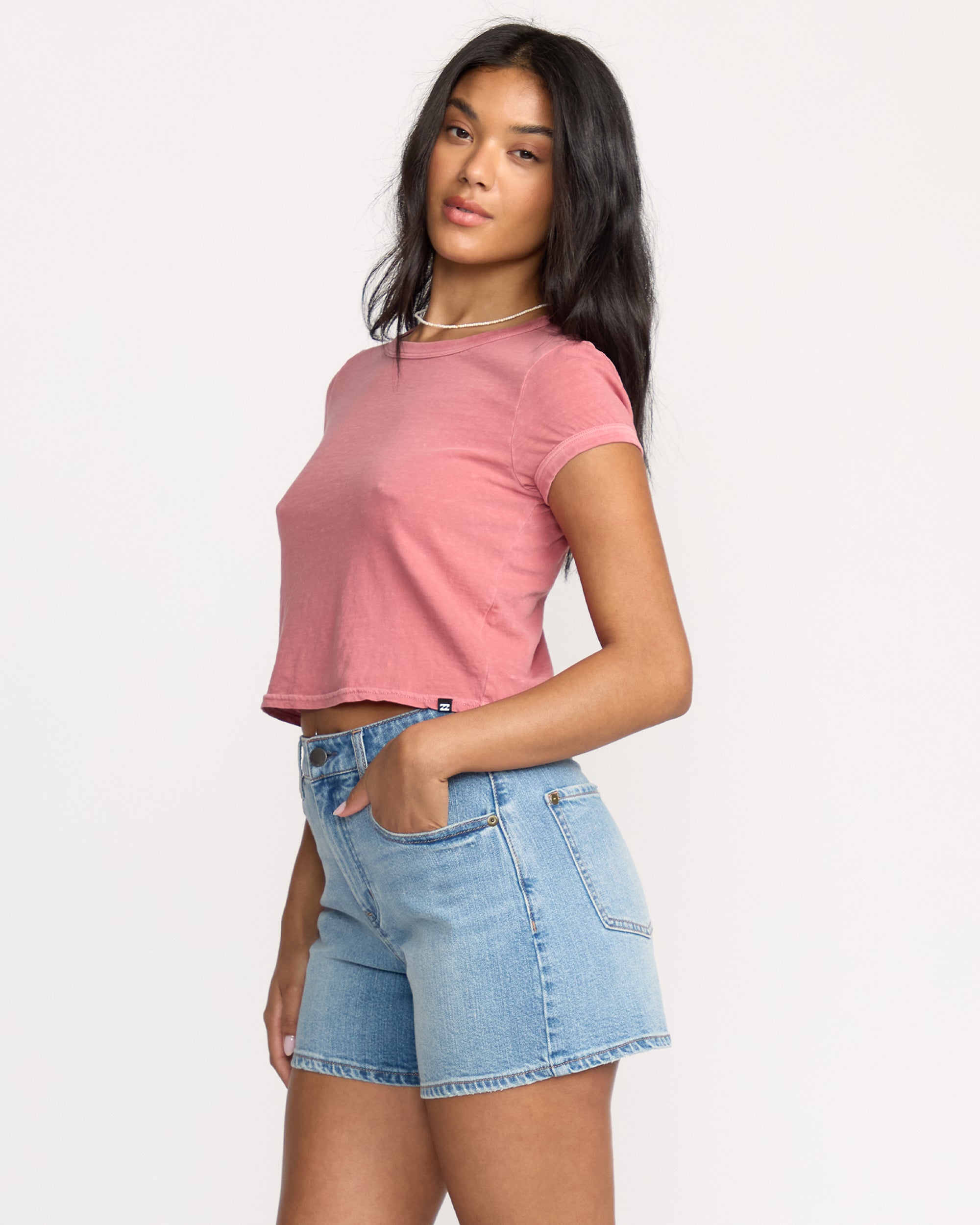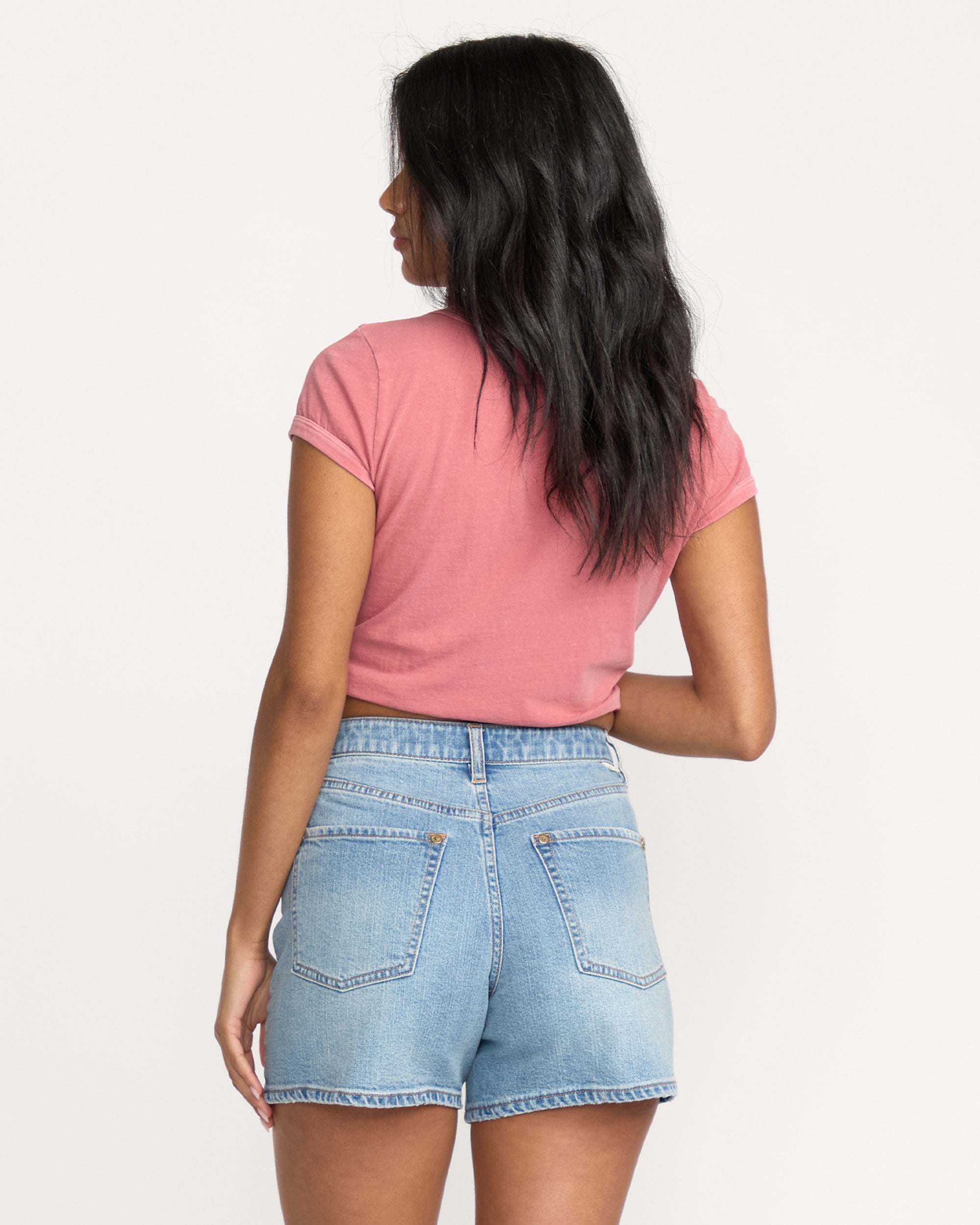 Our high-rise denim shorts bring comfort and style together with a regular fit that flatters every body type. The cotton-blend fabric moves with you. while five pockets keep essentials close at hand. Featured here in the Blue colorway.