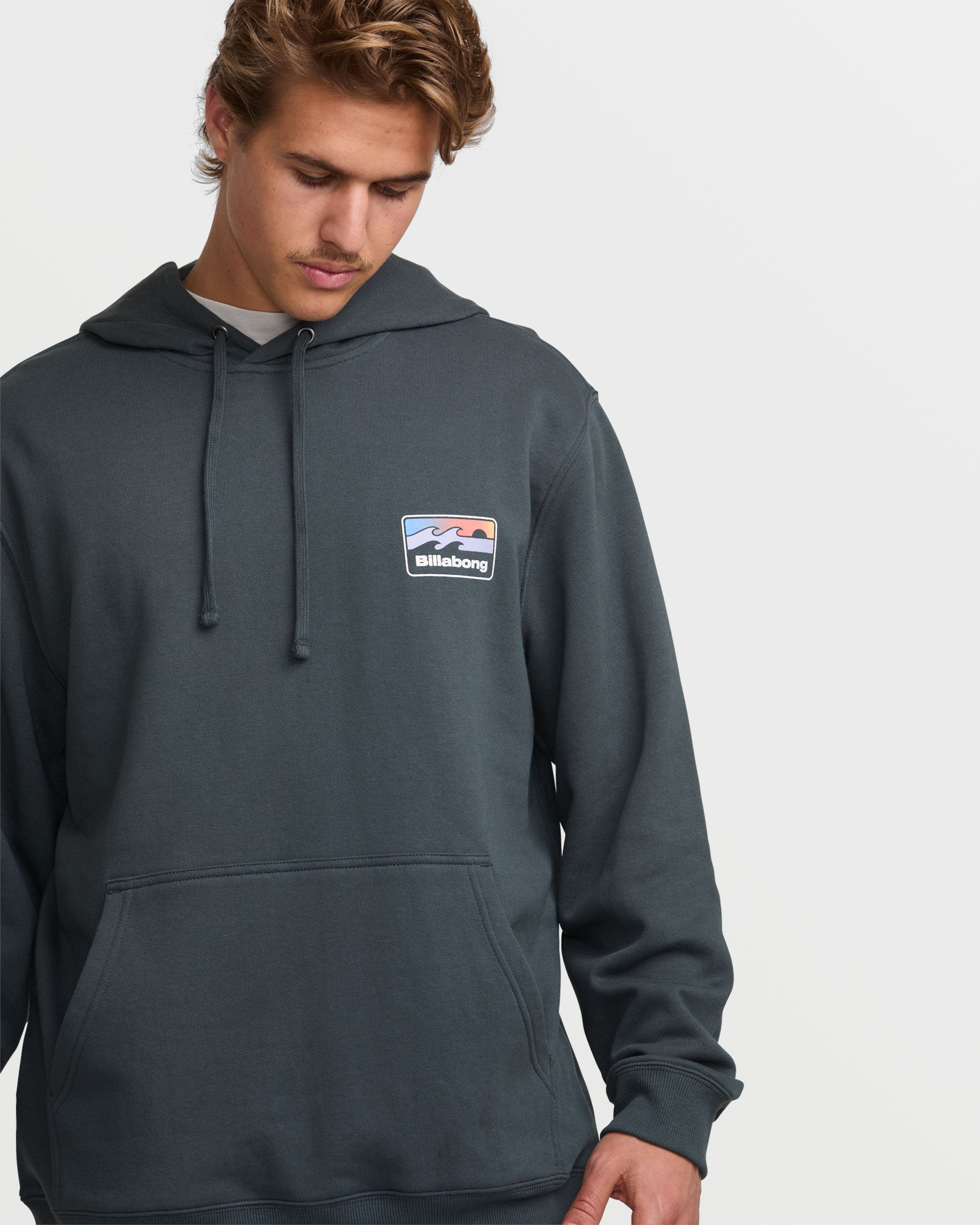 Soft fleece sweatshirt keeps it warm. This relaxed pullover features a screen-printed chest graphic. handy front pouch pocket and laidback OG fit in midweight 60% cotton/40% polyester fleece for easy comfort. Featured here in the Aged Indigo colorway.