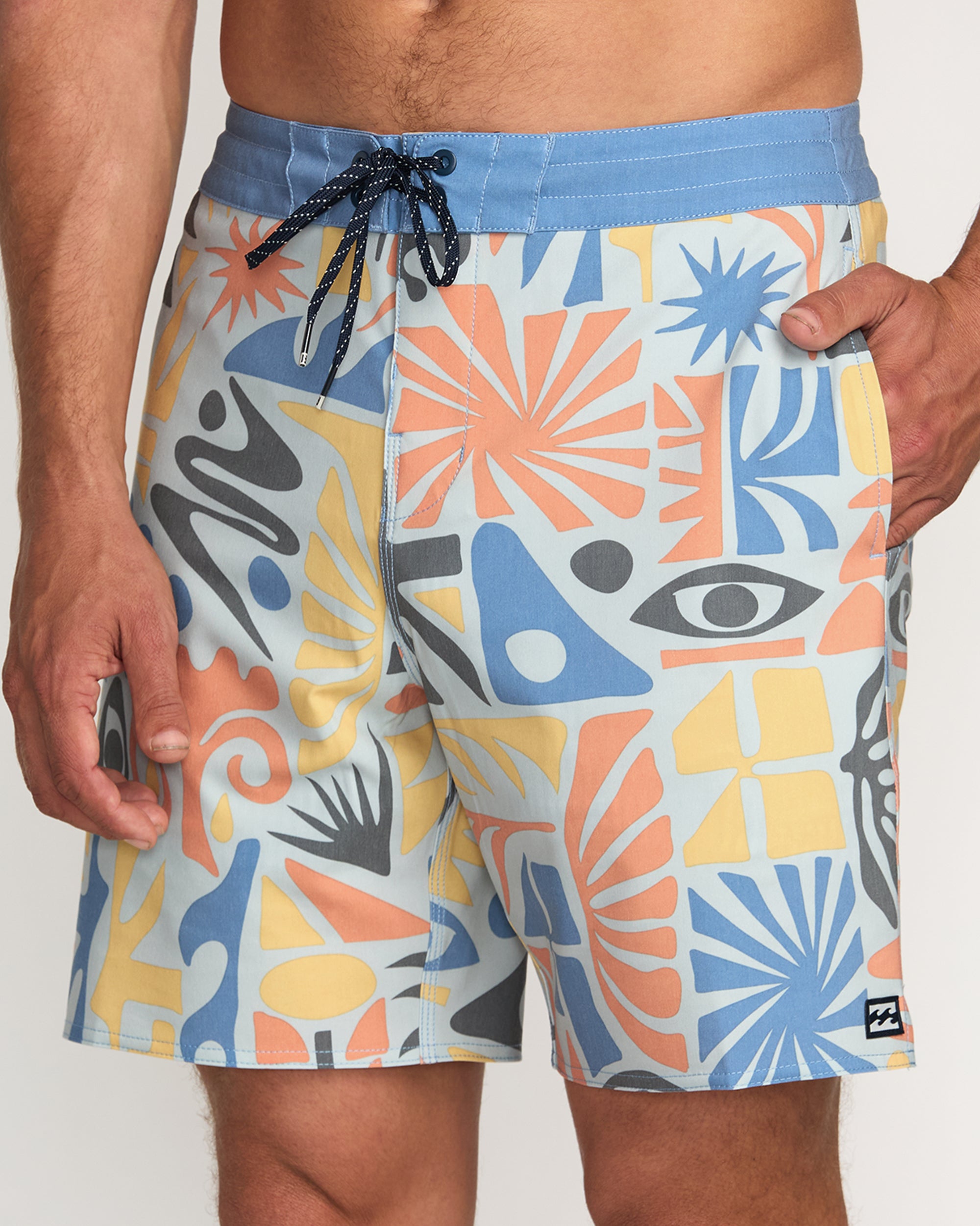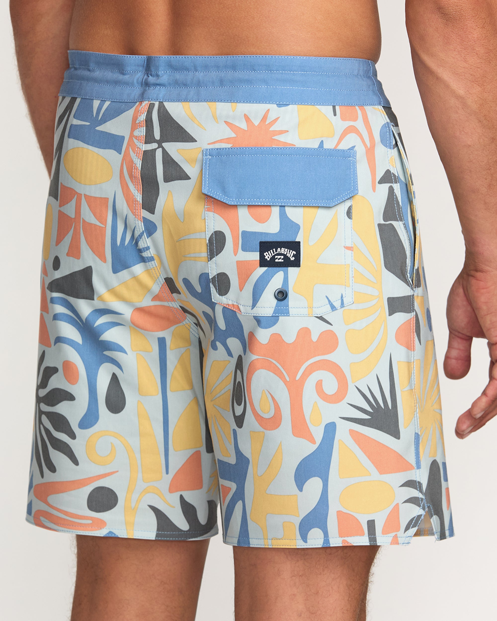 Lightweight yet durable poly-cotton stretch boardshorts with a versatile 18 lo tide length. Featuring handy back patch and side seam pockets. plus a secure drawstring waist. these Billabong shorts were made for endless summer adventures. Featured here in the Multi colorway.
