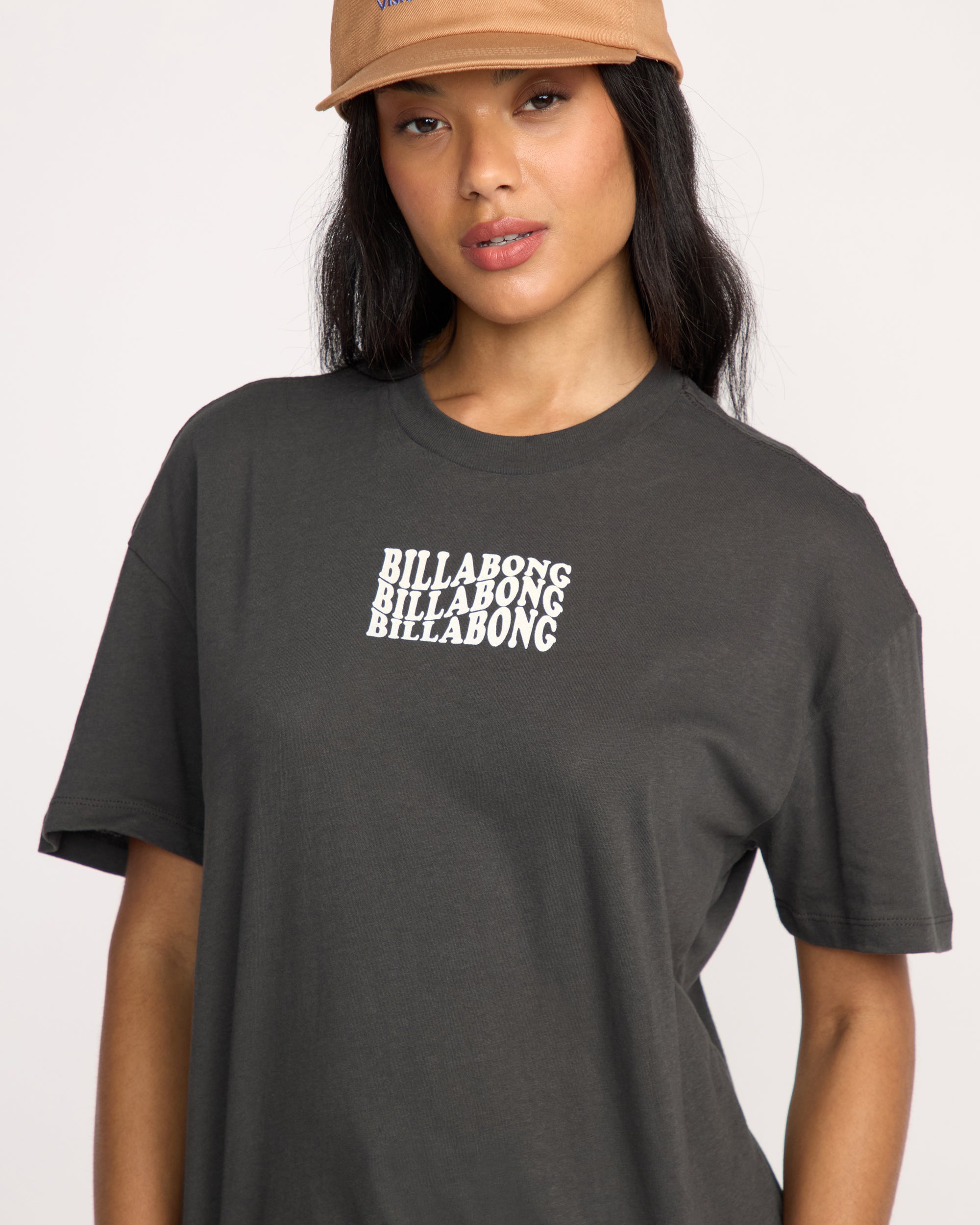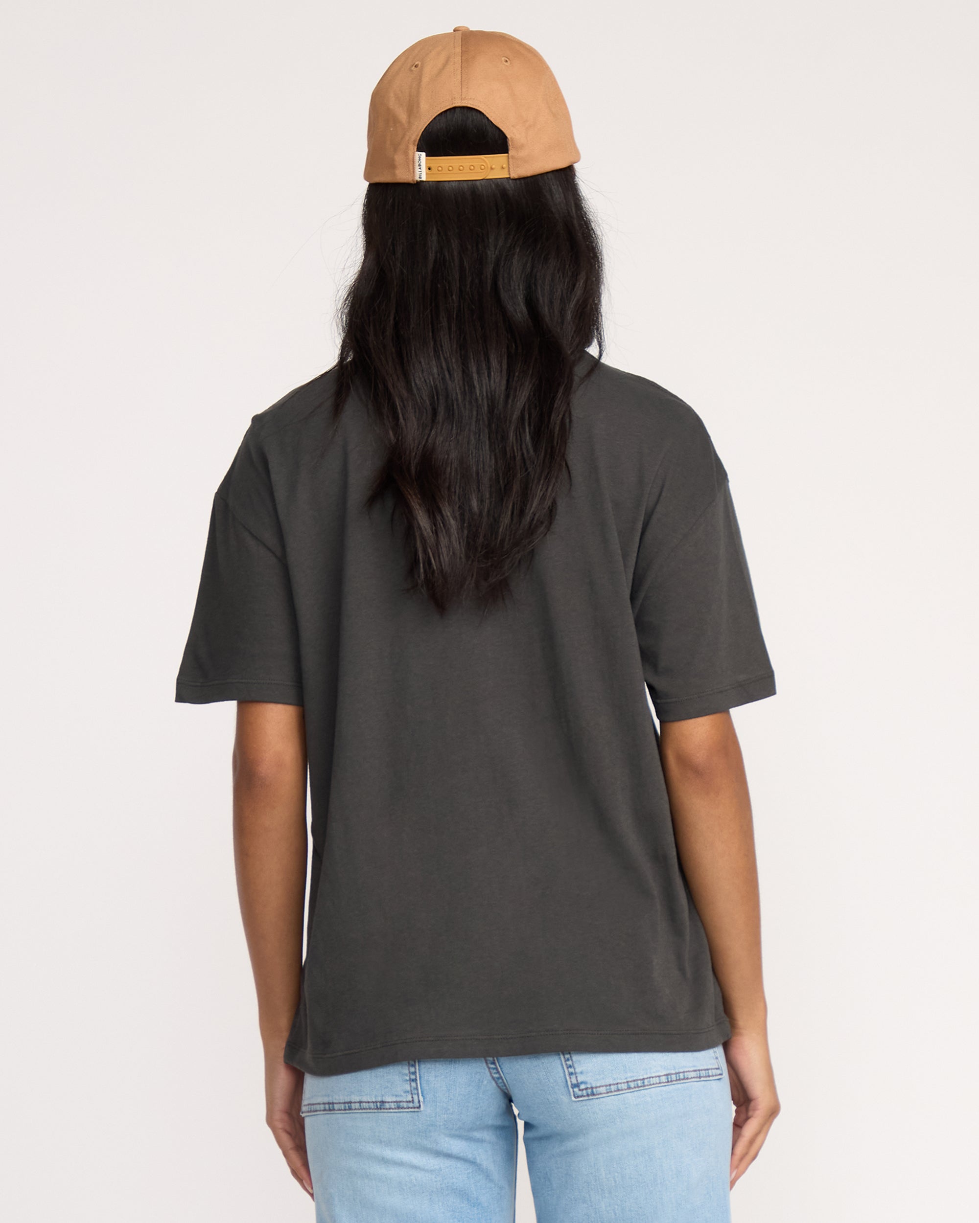 Laid-back cool meets everyday comfort in our relaxed-fit crew neck tee. The cotton jersey and pigment dye create that perfect lived-in feel. while screen printed artwork adds a distinctive tomboy edge. Featured here in the Black colorway.