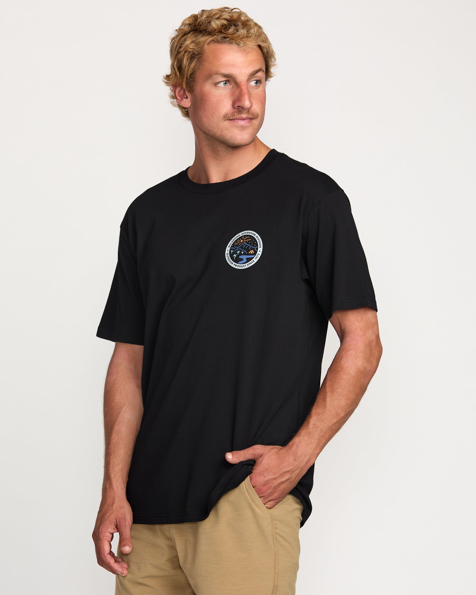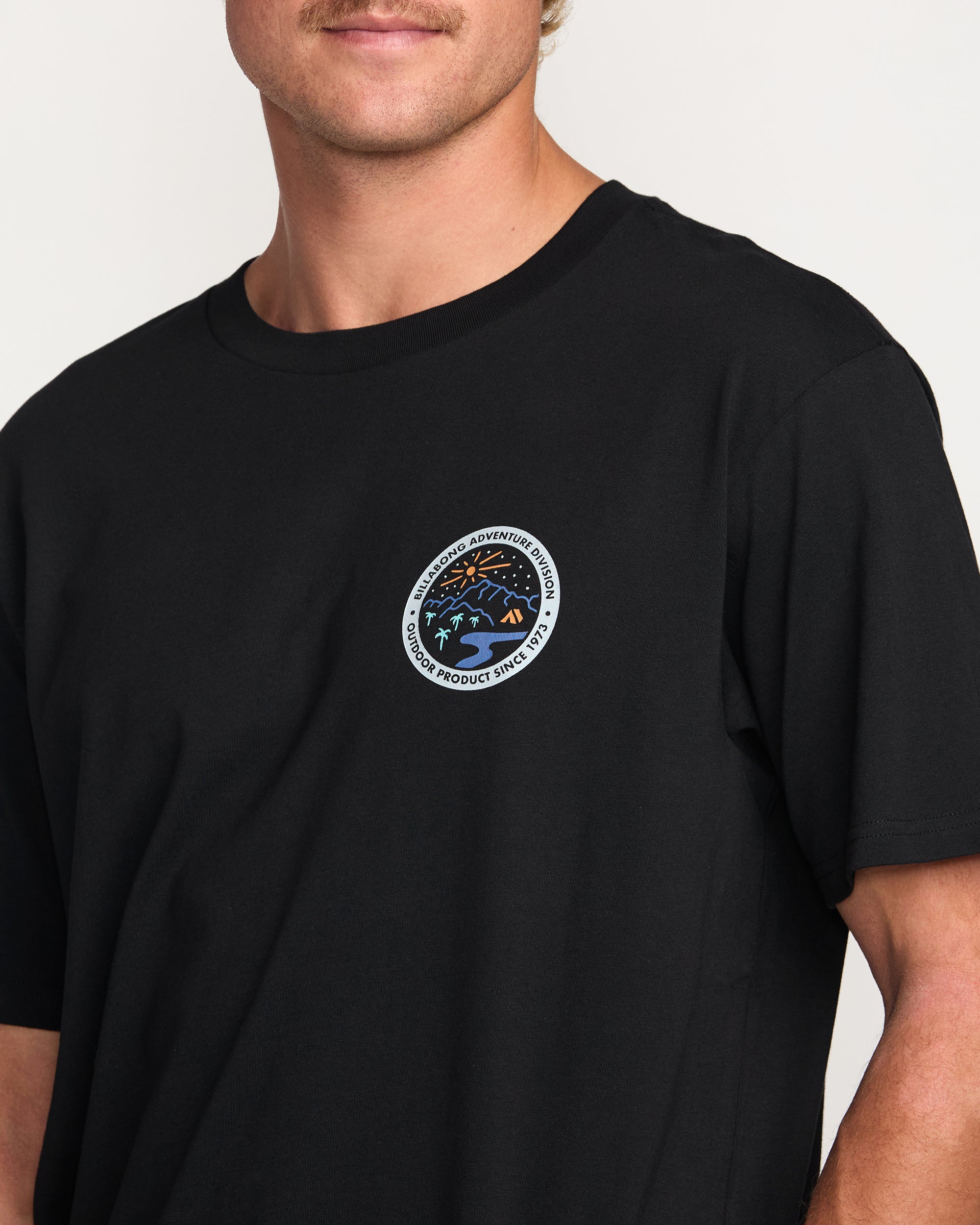 Our men’s Rockies A/Div Tee crafts casual comfort from 100% organic cotton. garment-washed for lived-in softness. The relaxed crewneck design rocks a timeless graphic across the chest. channeling all-day chill. Perfect for any adventure.