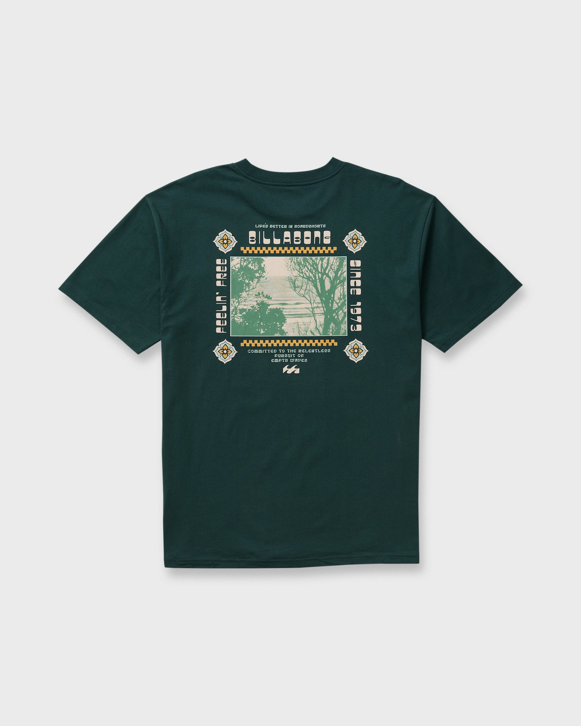 Our classic cotton tee brings easy comfort with relaxed shoulders and a wider neck. Featuring front and back screen prints. this soft. garment-washed design keeps things simple and stylish. Featured here in the Green colorway.