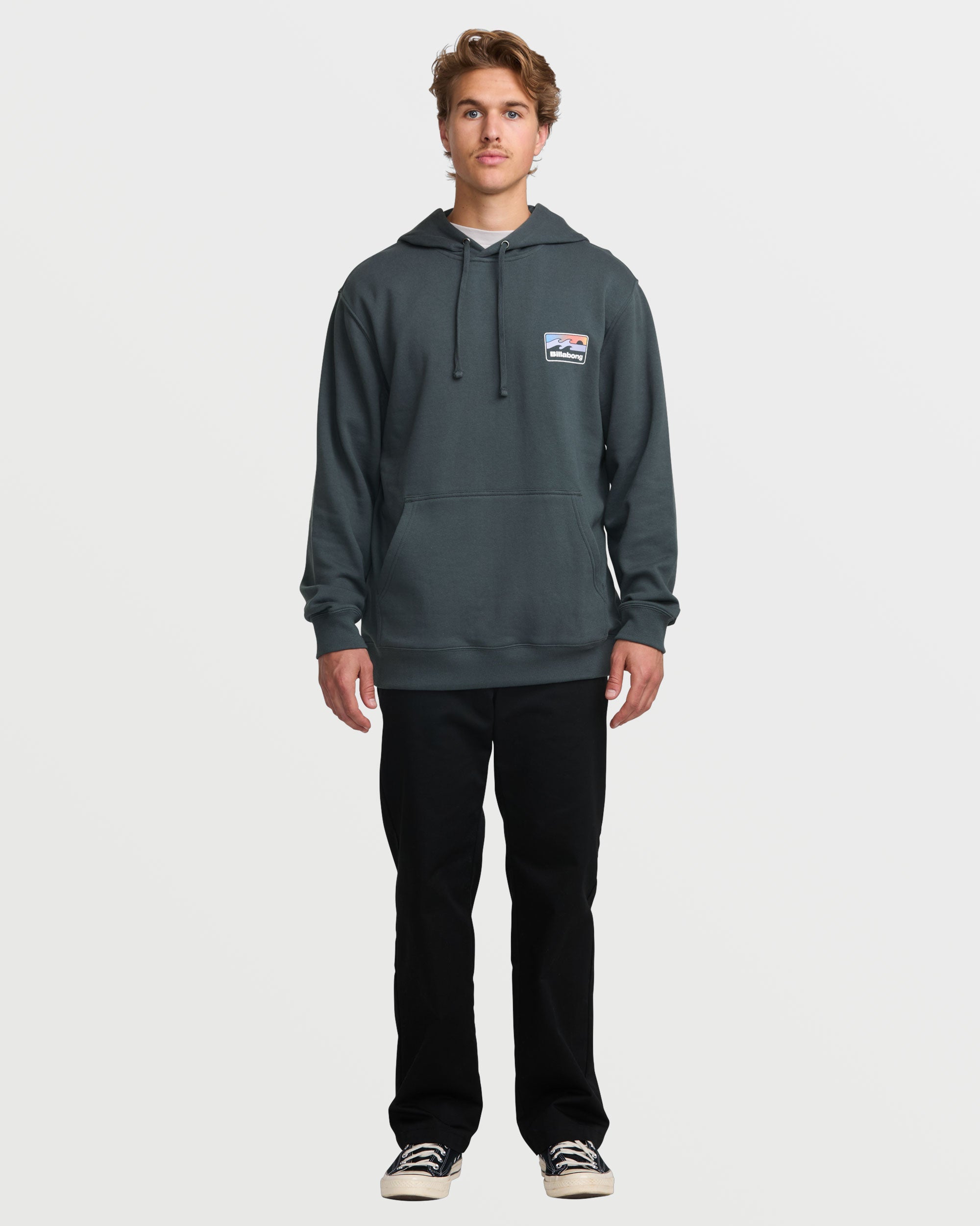 Soft fleece sweatshirt keeps it warm. This relaxed pullover features a screen-printed chest graphic. handy front pouch pocket and laidback OG fit in midweight 60% cotton/40% polyester fleece for easy comfort. Featured here in the Aged Indigo colorway.