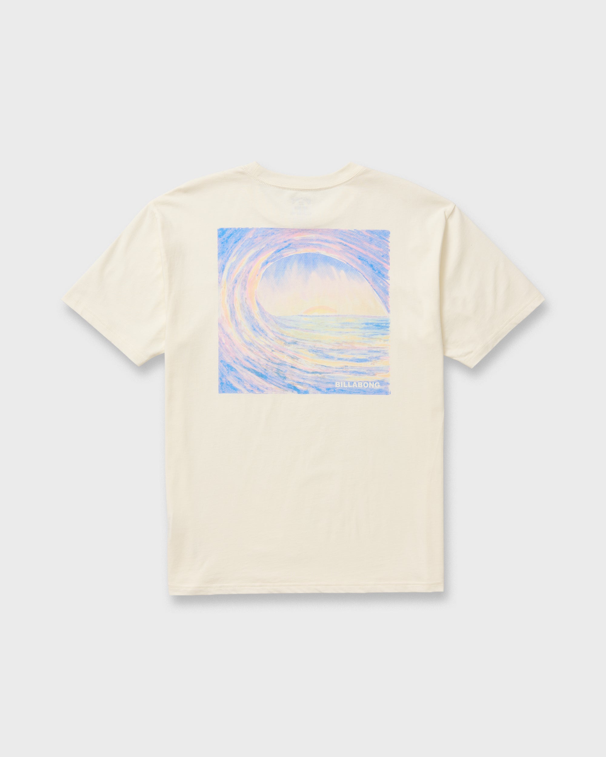 Our classic-fit cotton tee brings laid-back comfort with relaxed shoulders and a wider neck. Garment-washed for extra softness. with front and back screen prints that catch the eye wherever waves roll in. Featured here in the Beige colorway.